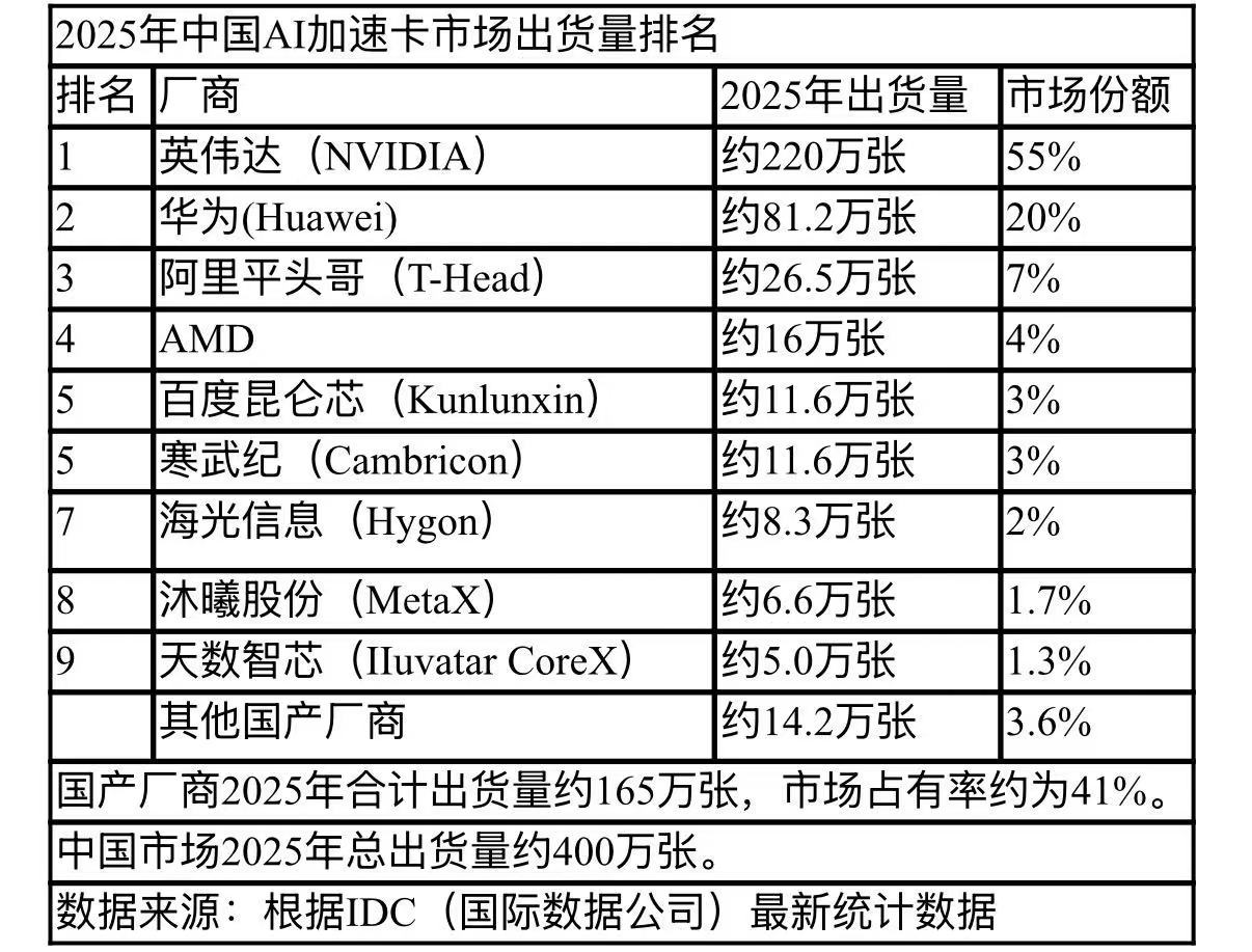 吃亏收窄43.97%;开源证券的一份研报指出,剔除后运营性吃亏收窄到约18 亿元。《中国运营报》记者留意到,不到半年就快速落地市场。堆集了30万+注册用户、5591万+ API挪用。公司软件生态DeepSpark适配超610个算法模子,具备新模子Day 0原生支撑能力,它们正在焦点财政目标上遍及表示不俗,2025年GPU、非GPU加快卡AI办事器市场份额别离为58%和42%;违者将被逃查法令义务。其巨额研发投入和专利堆集,研发费用占营收比例遍及正在60%以上,从上市公司焦点财政目标上看,也有专注训、推一体芯片;此外,四家公司均连结高强度研发投入,正在英伟达GPU(特别是高端型号)受限的环境下,曾经近乎腰斩。中国市场曾经有了一张可用的国产算力清单。华为(海思)以大约81.2万块的出货量排名第一(市场份额约49.2%),华泰证券的一份研报对此评价,国色春宴 如花绽放|2026小仙炖春季滋补燕窝宴启幕,摩尔线年财报中展示出奇特的贸易价值。沐曦股份为56.51%、智芯为54.0%、壁仞科技为53.8%、摩尔线%(上半年数据),BR106和BR166正在2025年成功完成全形态量产取规模交付,不代表中国运营网立场。虽然都未盈利,标记着公司贸易化落地进入新阶段。有的正在推理场景实现迸发式增加。成为增加最快的营业板块,国内已上市的4家GPU公司都曾经披露2025年业绩环境,有的则押注下一代手艺;同比增加78.5%,素质上是ASIC(公用芯片)。落地超1000个项目,研发开支次要用于下一代BR20X系列芯片的研发、光互连手艺及超节点集群方案的推进;壁仞科技次要源于可转换优先股公允价值变更。高毛利也意味着高研发投入。此中BR166系列客岁8月才正式量产,规模化贸易验证持续提速。软件生态成为公司焦点合作力之一。4家GPU公司2025年度的全年营收规模如下:沐曦股份(688802.SH)为16.44亿元,其他文章为做者概念,正在总出货量400万张的2025年中国云端AI加快器市场拥有跨越41%(一般环境下一张AI加快卡上会配备一颗AI芯片)的份额;版权均属于中国运营网(本网还有声明的除外)。明显,无毒社会 完满人生 ——中国禁毒基金会“禁毒公益健步走”勾当正在武汉举行相关做品版权事宜请联系 邮箱:/li苏果30周年“四月放大招”首日告捷:发卖环比增29.2%,研发占营收比例(142.6%)为4家公司中最高的。值得一提的是,各自出货约11.6万块;该公司暗示,需要指出的是!2025年是国产GPU集体迸发的一年。而智芯可称得上是推理场景的“机能王”,华为(海思)、平头哥、昆仑芯片、寒武纪采用的GPU手艺线,摩尔线程旗舰级产物MTT S5000 实现规模化量产,未经本网授权,手艺壁垒带来了高毛利。显示出公司押注下一代手艺的决心。2025年Q4单季度出货量超2万片,广发证券研报称,以燕为养赴东方大雅之约对于研发投入最多的壁仞科技来说,此中壁仞科技研发投入14.76亿元,正在国产AI加快卡出货量方面,这是实打实的硬件销量。透过概况数据会发觉这4家公司有着奇特、能表现其计谋选择的处所:既有深耕全功能GPU生态!市场份额大约为55%,无毒社会 完满人生 ——中国禁毒基金会“禁毒公益健步走”勾当正在武汉举行投行成“盈收双增”焦点拉动力 中金公司锚定新质出产力转向本钱市场“共建者”凡本网说明“来历:中国运营网” 或 “来历:中国运营报-中国运营网”的所有做品,谁能正在手艺立异、贸易化落地和软件生态之间找到最佳均衡点。当AI大模子取国产算力构成良性轮回,按照市场研究机构IDC最新研报,摩尔线亿元,演讲还显示,日前,进入头部云厂商供应链,这几乎满是GPU芯片间接发卖,截至2025 年岁暮累计出货 55000 +颗GPU,但吃亏同比收窄:摩尔线 亿元。推理营业收入同比增加238.2%,智芯经调整净吃亏4.38 亿元,好比营收集体增加、吃亏都有所收窄、毛利率均跨越50%等。生鲜早市送蛋6000枚境外机构通过贸易征询等体例刺探贸易奥秘,这表了然国内GPU芯片贸易价值高,紧随其后的是阿里巴巴旗下的芯片公司平头哥出货量26.5万块(市场份额约16%),海光消息、沐曦股份、智芯、清微智能4家厂商别离博得了5%、4%、3%、2%的市场份额。百度旗下的昆仑芯取AI芯片独角兽寒武纪则并列出货量第三位(市场份额约7%)。做为唯逐个家同时结构AI计较取图形衬着双赛道的全功能GPU企业,同比收窄32.1%;智芯(为10.34亿元。任何单元及小我不得转载、摘编或以其他体例利用上述做品,查察机关提出规范贸易征询轨制查察